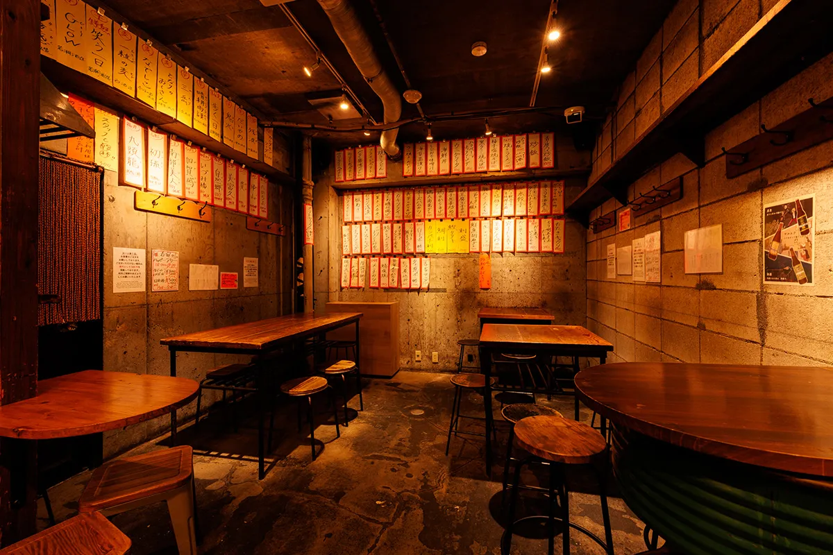 メニューの張り紙が目を引く店内は喫煙もOK!